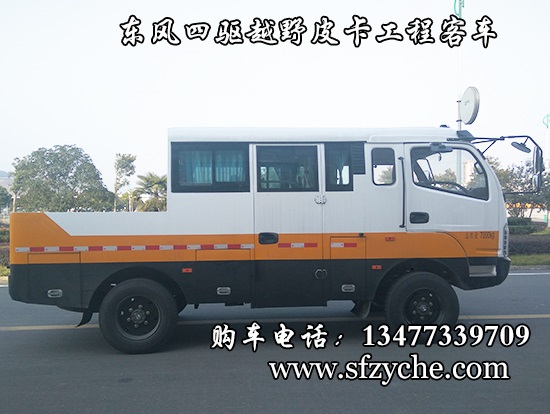 東風(fēng)4×4驅(qū)動(dòng)越野皮卡工程客車——EQ5070XGCTV型工程車(核定人數(shù)5-9人)