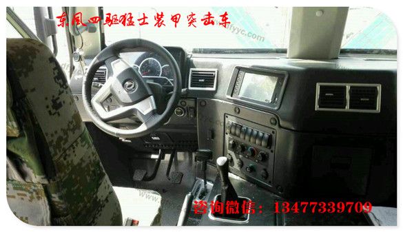 上圖是6輪驅(qū)動(dòng)長(zhǎng)軸2代猛士裝甲車駕駛艙特寫(xiě)。較1代猛士裝甲車有24處改進(jìn)。諸如:粗握把3幅面方向盤(pán)可以減緩駕駛員操作時(shí)的疲勞程度(1代猛士的方向盤(pán)為細(xì)握把,駕駛時(shí)間超過(guò)2小時(shí)手掌酸痛)。全新的組合儀表,將發(fā)動(dòng)機(jī)轉(zhuǎn)速、車速、發(fā)動(dòng)機(jī)水溫、機(jī)油壓力、蓄電池電壓顯示的更加清晰。各個(gè)功能按鍵全部改為由上至下按壓式大尺寸開(kāi)關(guān)。而輪胎壓力調(diào)節(jié)開(kāi)關(guān)從儀表臺(tái)左下側(cè)轉(zhuǎn)移至右側(cè)(此處改進(jìn)有助于駕駛員快速操控)。