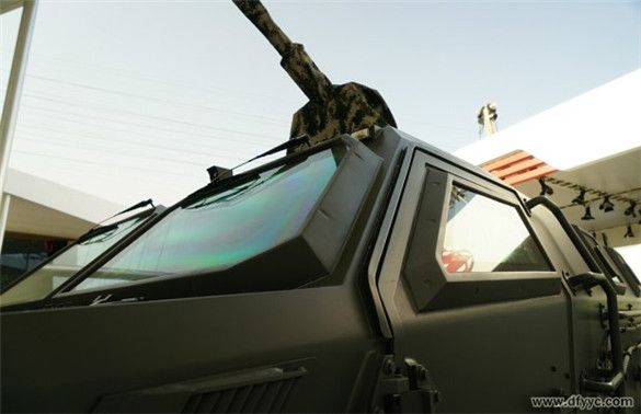 東風四驅(qū)防雷反恐戰(zhàn)車全車具備防護7.62毫米口徑穿甲彈攻擊,正向具備防護12.7毫米口徑機槍彈攻擊(100米),而全車所有玻璃可以抵御7.62毫米口徑穿甲彈連續(xù)射擊3次擊穿。為了提升防護級別、密封效能和降低觀察死角,全車防彈玻璃突出車身焊接外側(cè)安裝。