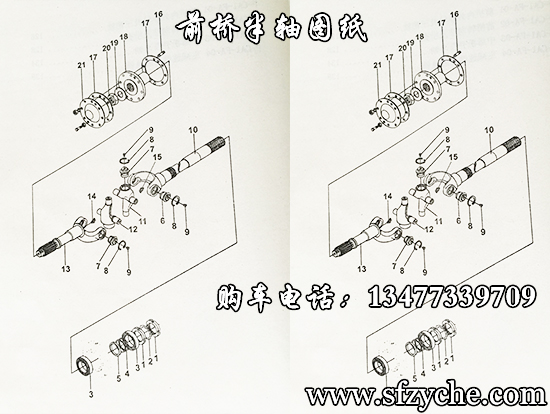 東風EQ240尖頭六驅(qū)軍車前橋圖紙,EQ240、EQ2081E、EQ2061E、EQ2082E6D、EQ1093等車型均采用東風德納2.8噸級前橋,前橋裝有三肖式等速萬向節(jié),主減速器速比6:35和6:37兩種,老款汽油車型都是6:37齒盆角齒;后期柴油車采用6:35齒盆角齒,輪胎螺絲6孔。下面詳細提供整根車橋細節(jié)圖紙: