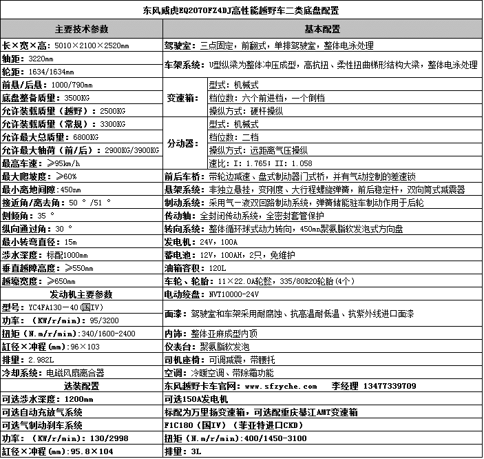 東風(fēng)EQ2070FFZ4D型高性能越野特種車是一款技術(shù)先進(jìn)、性能卓越、多功能、全天候的特種越野車,也是中國(guó)上唯一在沙漠、山區(qū)等極其艱苦環(huán)境條件下顯示高技術(shù)、高性能和高可靠性的軍用和特殊民用汽車。該產(chǎn)品,無論是越高山峻嶺、穿林海雪原,還是闖茫茫沙漠、涉沼澤泥潭,無論是用作防彈運(yùn)兵、戰(zhàn)地救護(hù),還是用作森林消防和野外勘探,它都能以超一流的越野通過能力、高涉水性,可靠耐久性和優(yōu)異的上裝適用能力,令世人嘆為觀止,當(dāng)之無愧地成為挑戰(zhàn)越野極限的明星。如需了解更多EQ2070FZ4D型越野四驅(qū)汽車的詳細(xì)參數(shù)和配置請(qǐng)立即撥打銷售熱線:13477339709 李經(jīng)理 0722-7053060 業(yè)務(wù)QQ:530233927,微信號(hào):13477339709 ,東風(fēng)越野卡車網(wǎng)址:www.msbxzp.com
