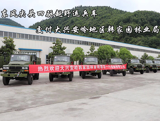 東風(fēng)四驅(qū)越野森林消防運(yùn)兵車12輛交付黑龍江省大興安嶺地區(qū)韓家園林業(yè)局,2018年5月中旬林業(yè)局領(lǐng)導(dǎo)到我公司驗收招標(biāo)采購的東風(fēng)牌EQ1093F型四驅(qū)越野卡車12輛用于森林滅火工作的保障車輛,采購車輛交接儀式圖片如下: