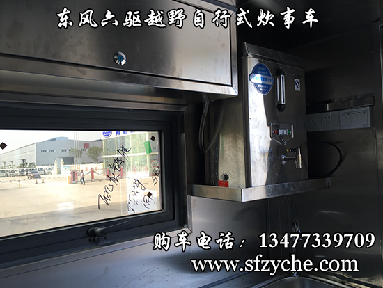 東風(fēng)六驅(qū)越野自行式炊事車(chē)車(chē)輛概述:采用東風(fēng)六驅(qū)越野底盤(pán)改裝, 車(chē)廂材質(zhì)采用外冷軋鋼板,內(nèi)飾不銹鋼,中間保溫層,隱藏式上車(chē)踏步,頂部安全窗,兩個(gè)高原副食灶,一個(gè)高原蒸飯車(chē),抽油煙機(jī),平冷柜,水路,電路,油路等。